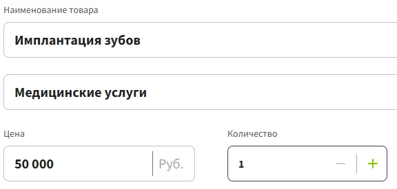 - Напишите в свободной форме название услуги, например "Имплантация зубов"