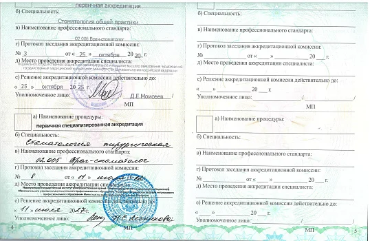 2020-22 гг. — клиническая Ординатура Новокузнецкого ГИУВа по специальности «Стоматология хирургическая».