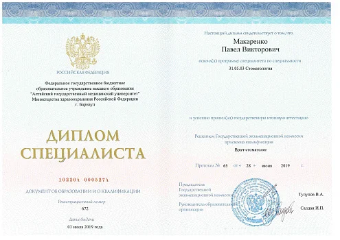 С 1.08.2019 – 15.07.2020 время Врач-стоматолог в Новокузнецкой городской клинической стоматологической поликлинике.