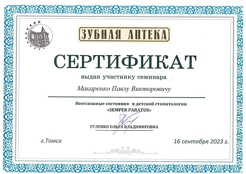 Сентябрь 2023 Неотложные состояния в детской стоматологии – Гуленко Ольга Владимировна