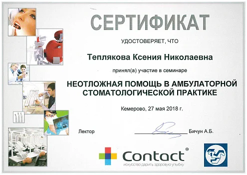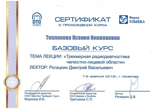 2014 - ГБОУ ВПО КемГМА, интернатура по специальности «Стоматология общей практики»
