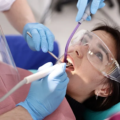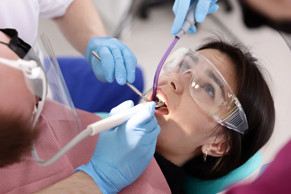 Во время чистки удаляется поддесневой и наддесневой зубной камень, уничтожается патогенная микрофлора и зубной налет. Процедура подходит пациентам с коронками или имплантатами.