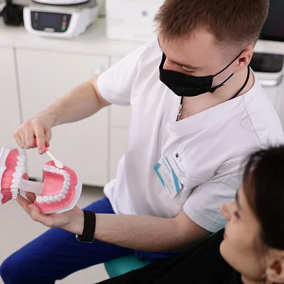 При необходимости даем пациенту направления к другим специалистам и консультируем относительно ежедневной гигиены полости рта в домашних условиях.и