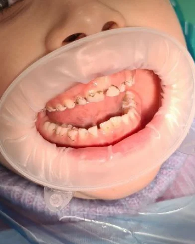 Полный протез стоит всех на 4 имплантах, он ничем не отличается от настоящих зубов. Этот протез не нужно снимать и надевать. Отсутствие дискомфорта не давит и не натирает десну.